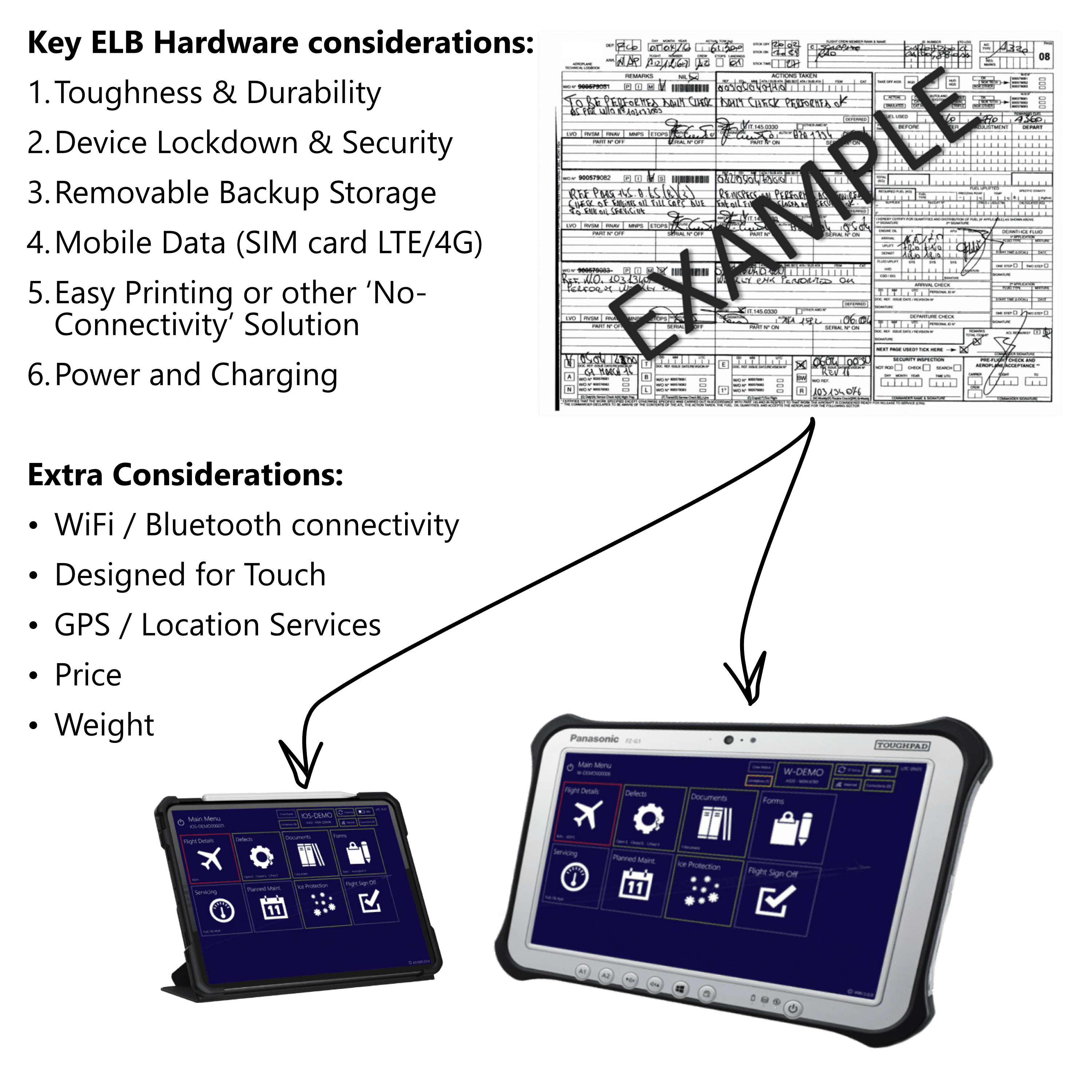 So, you’ve decided to implement an Electronic Technical Log (ELB), rid yourselves of paper carbon copy books and join the 21st Century – hooray! But first there is an important decision to be made; should you choose an iOS or Windows device?