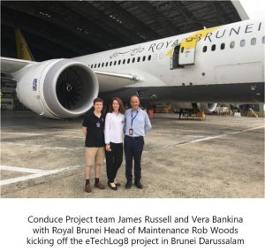 Conduce are proud to announce that Royal Brunei Airlines (RB) have selected eTechLog8 to replace the airline paper technical log books for both their Boeing and Airbus fleets. Conduce eTechLog8 eliminates the line maintenance paper processes with regards to the aircraft technical log and deferred defect/cabin logs. eTechLog8 is a Universal Windows Platform (UWP) application that is mostly used offline. The solution only requires an internet connection to transmit data when appropriate. Conduce CEO Steve Russell, stated that “Conduce are honoured and excited to have been selected by the Brunei Darussalam national flag carrier.” Conduce are committed to setting up an office in the Far East, as there is an enthusiastic local airline market for paperless operations. eTechLog8 with RB will be integrated with the in-house MIS system AMOS, utilising the AIM SPEC 2000 compliant “TRANSFER_ATA_ELB” interface. Rob Woods (Head of Engineering, Royal Brunei Airlines) comments “The Conduce eTechLog8 solution has been selected as a result of a formal RFP process. eTechLog8 is both compliant and flexible, which facilitates the operational needs of our Airbus and Boeing fleet. The extensive EASA NAA approvals for eTechLog8 is a strong positive along with Conduce’s demonstrated experience of implementing ELB solutions”. About Conduce: With offices in the UK and Australia, Conduce provide robust mobile solutions for the world wide airline industry. eTechLog8 is the leading ELB solution to replace paper technical log books. eTechLog8 is certified by many NAA’s, often managing multiple AOC’s. Full integration with the majority of MIS/MRO back office airline systems is standard. (www.conduce.net) About Royal Brunei Airlines (RB): Royal Brunei currently operates a fleet of fourteen aircraft comprising of five Boeing 787-8 Dreamliner aircraft together with seven Airbus A320NEO aircraft and two Airbus A320 CEO Aircraft. RB now operates one of the youngest fleet in the world with an average fleet age of two years. In 2018, RB received the APEX Official Airline Ratings™ Four-Star Award and as winners of TripAdvisor Travellers' Choice Economy Class – Asia and Travellers' Choice Regional Airlines – Asia. In the recent Skytrax airline rating RB moved up fourteen places to be at number 78 (from 92) in the top 100 airlines in the world.